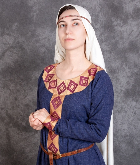 Early medieval royal wool dress with hand-stamped silk