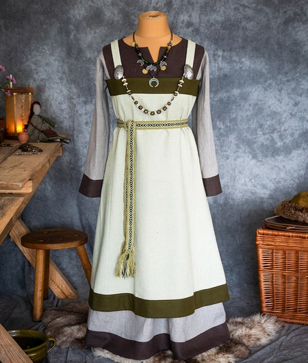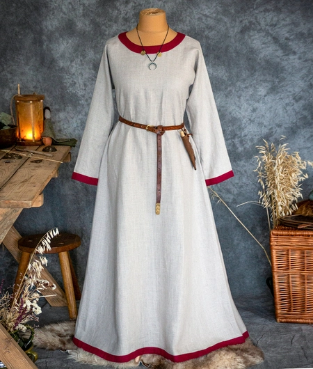Early Medieval linen dress with a round neckline and narrow linen trim