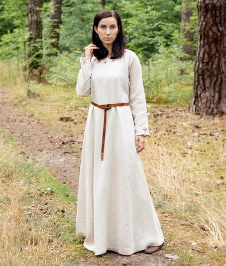 Early Medieval linen dress with a round neckline and narrow linen trim