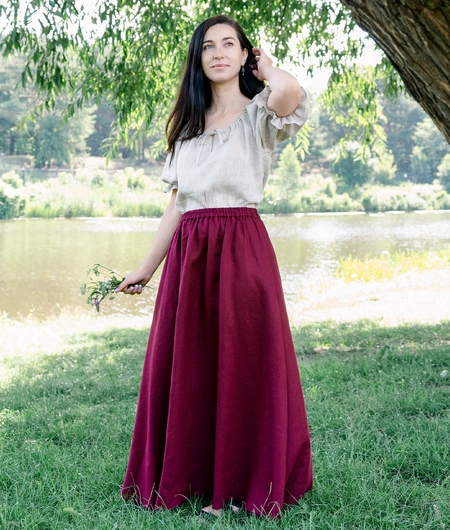 High-waisted linen maxi skirt with elastic waistband