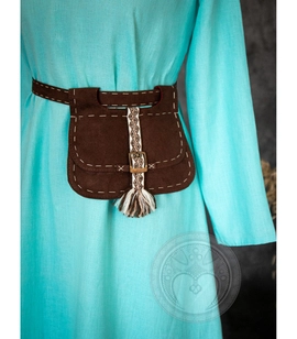 Buckle-adjustable waist bag with handmade seams and 100% wool trim in fantasy style