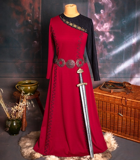 QUEEN LAGERTHA - Fantasy Viking dress with faux leather sleeve