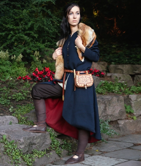 Early medieval Birka open woollen women's caftan with linen lining