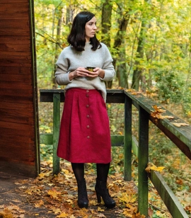 Linen midi skirt with front buttons and pockets
