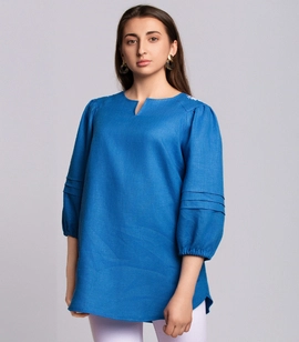Women's natural linen shirt with stand-up collar