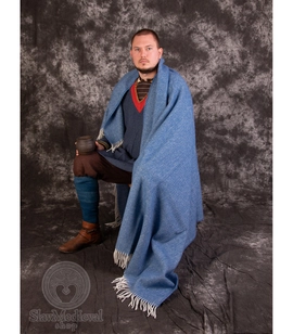 Wikiński gruby duży koc w diament z surowej wełny merino z frędzlami