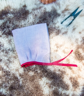Średniowieczny lniany czepek dziecięcy z lnianą lamówką
