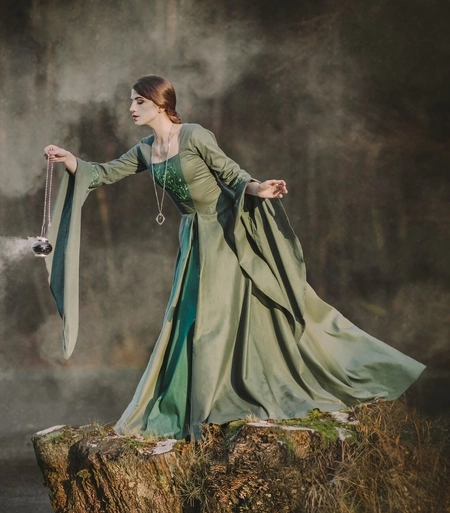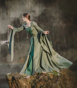 CELTYCKI LAS – Bajkowa luźna sukienka lniana z szerokimi rękawami w stylu średniowiecznym