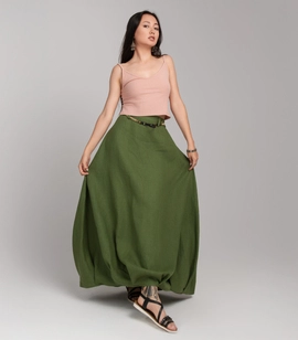 Lniana spódnica maxi z wysokim stanem i gumką w pasie