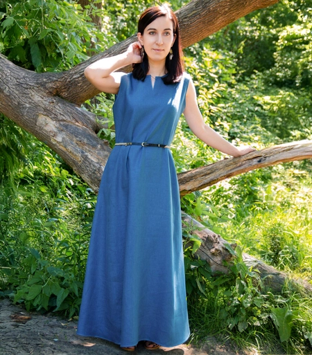 Sukienka lniana maxi bez rękawów z regulowanym sznurkiem w talii i kieszeniami