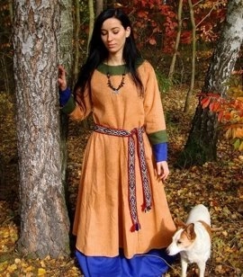 Wczesnośredniowieczna lniana suknia z wąskimi lnianymi obszyciami