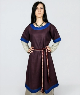 Lniana tunika damska z Rusi Kijowskiej z lnianymi obszyciami