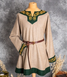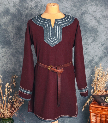 Ręcznie haftowana skandynawska wełniana tunika z rozcięciami