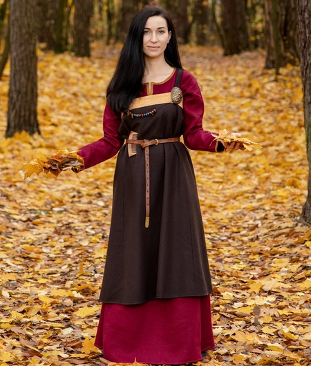 Wczesnośredniowieczna lniana sukienka z cienkim obszyciem w diament
